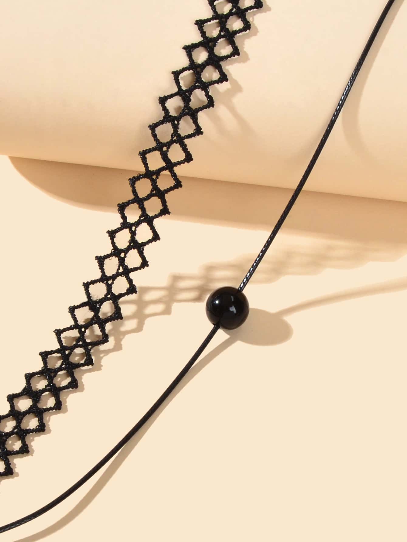 Double Layered Black Lace Short Necklace Elegant Gothic Style Choker