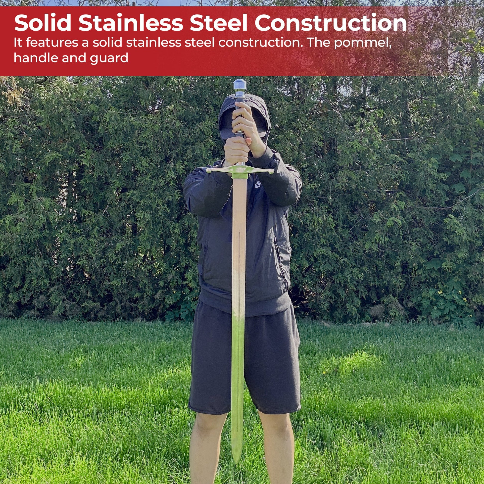 Dimensions: Overall Length - 43 inches, Blade Length - 31 inchesBlade Material: 440 Mirror Polish Stainless Steel, Fuller on both sides, 2.75 mm Thick