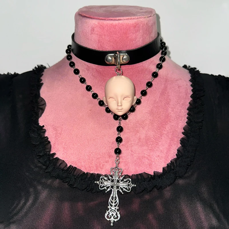 Gothic Jewelry Leather Devil Doll Head Pendant Necklace Women Accessories Punk Charm Halloween Choker Korean Fashion Necklace