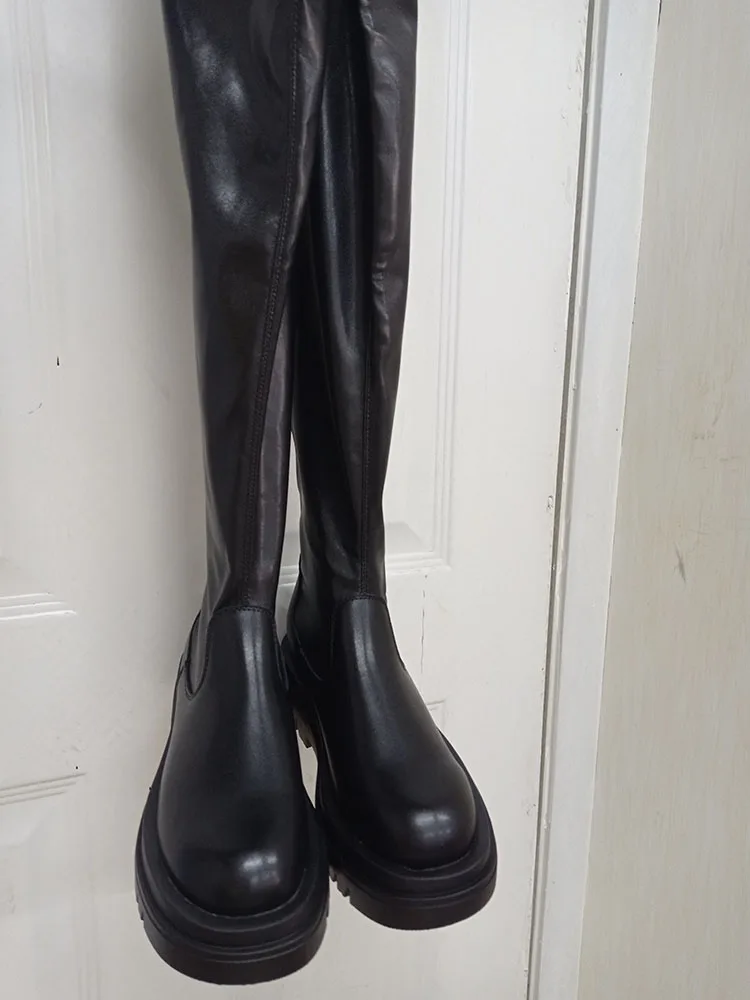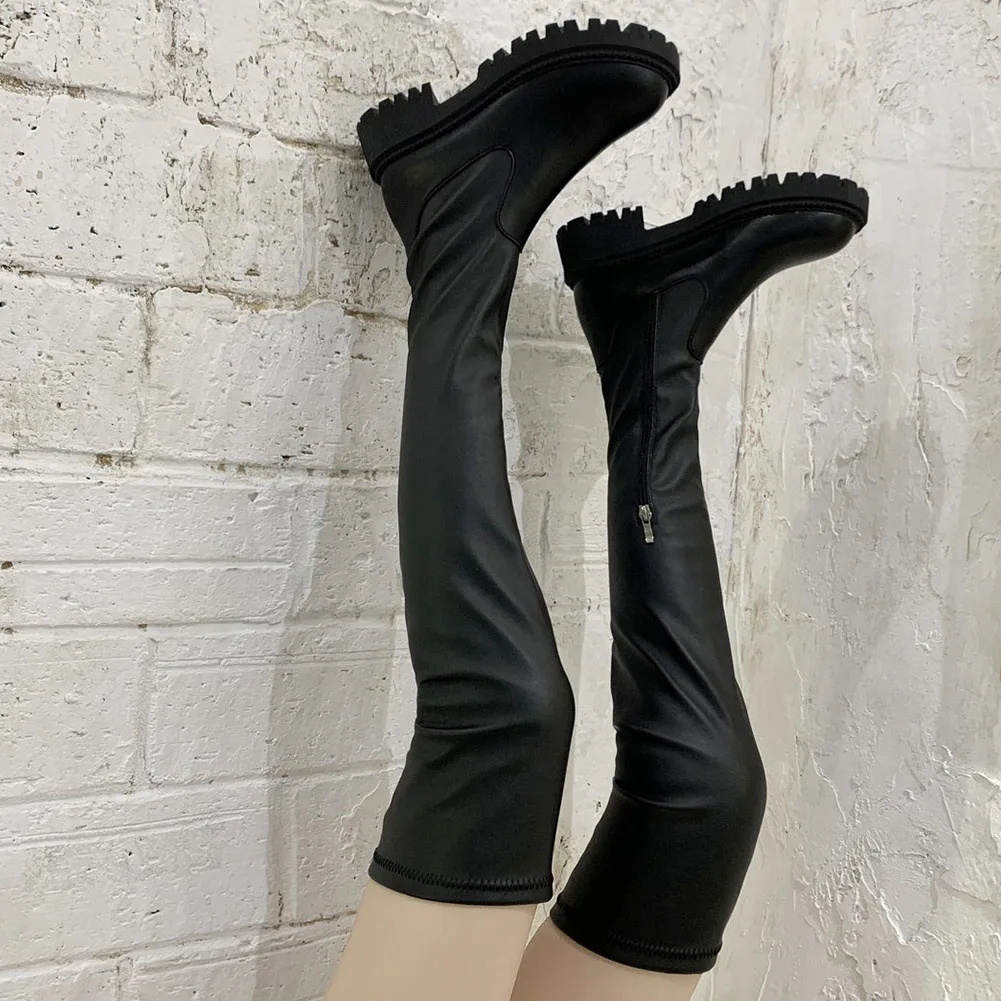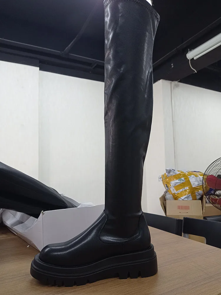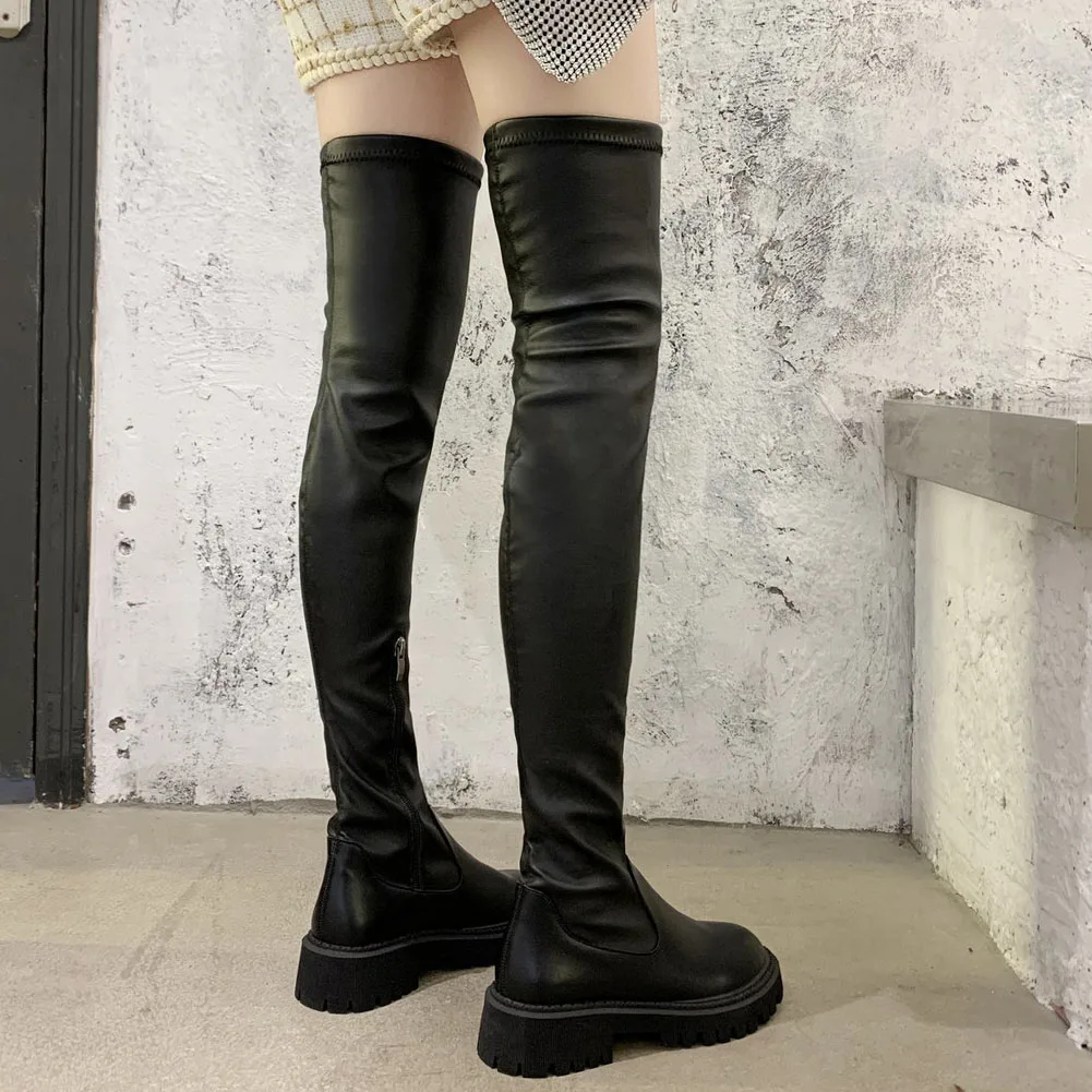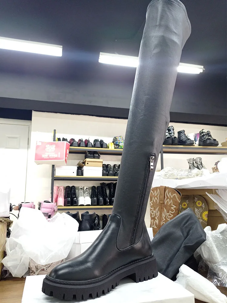 High Quality Gothic Boots Square Heel Platform 2021 Winter Black Sexy Comfy Women over Knee High Boots Platform Shoes