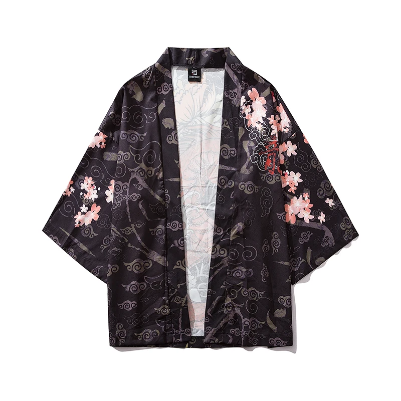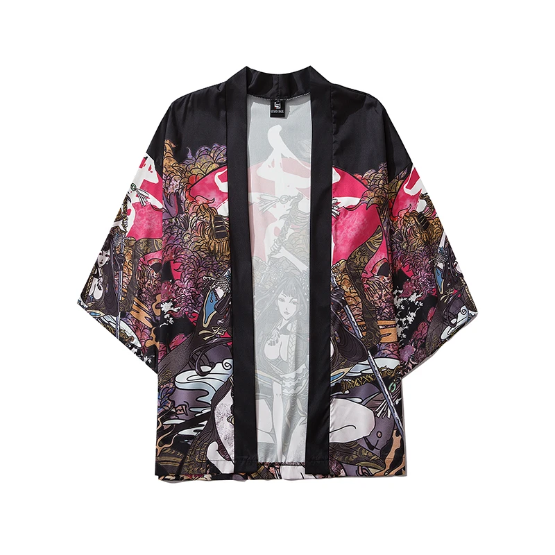 Traditional Japanese Samurai Cat Kimonos Cardigan Robe Men 2021 Summer Women Yukata Haori Casual Cosplay Anime Clothing